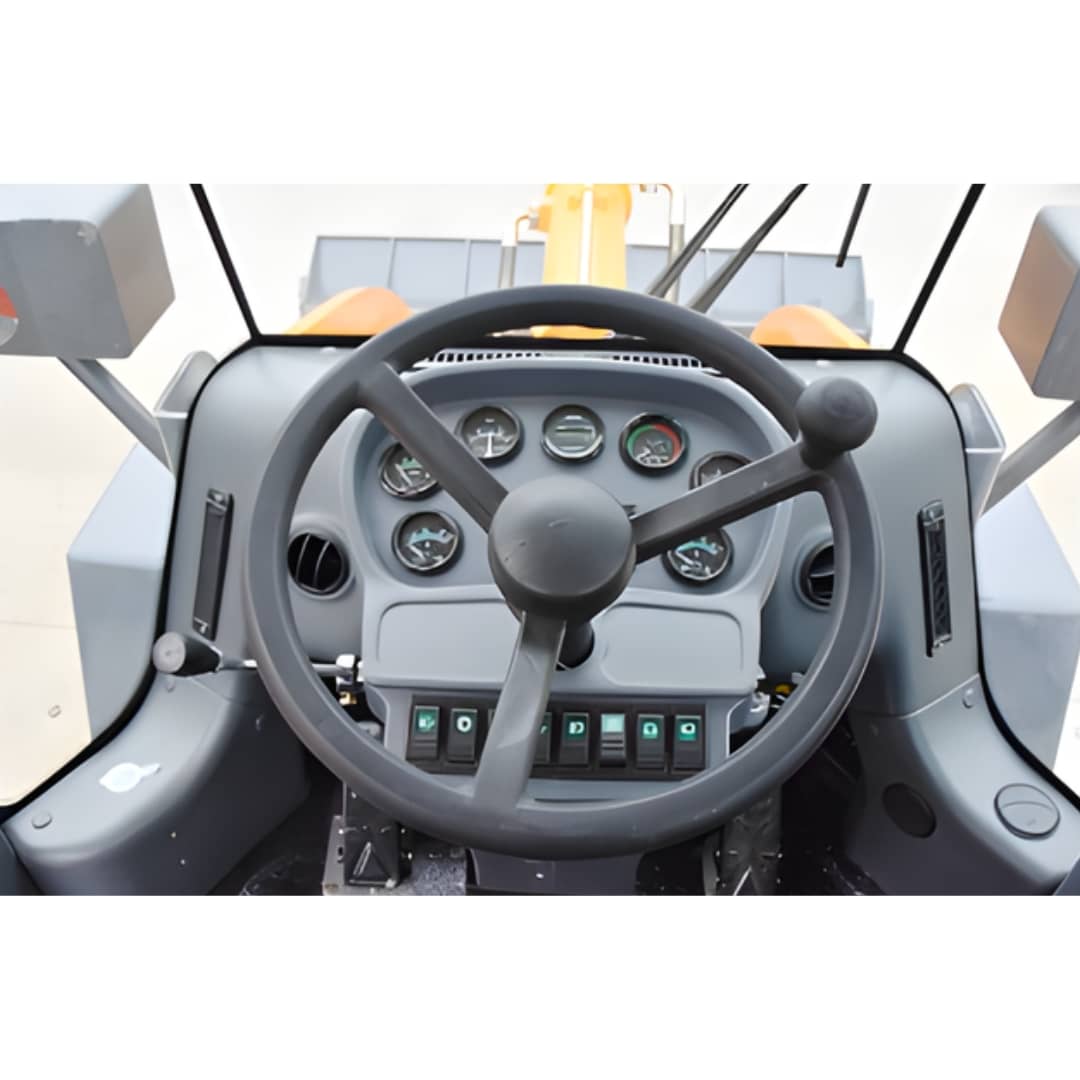 El MR936B está diseñado para trabajos exigentes en canteras, plantas de agregados y logística pesada. Su cucharón de 1.7 m³ y 3 t de carga permiten mover grandes volúmenes con ciclos ágiles. El motor Weichai Deutz 92 kW (500 N·m), acoplado a convertidor YJ315-X y power-shift F4/R2, entrega velocidad y empuje para rampas y pilas altas. El hidráulico a 16 MPa con 4.83 s de levante y nivelación automática mejora la precisión al cargar. Frenos de disco aire-hidráulico aseguran detención firme; radio de giro de 5.1 m favorece maniobras. Robusto, confiable y con cabina cómoda, optimiza costos por tonelada movida.