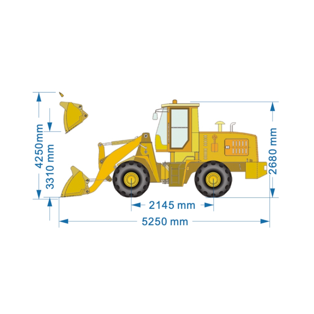 Con un cucharón de 0.65 m³ y una altura de elevación máxima de 4.25 m, ofrece rendimiento constante en entornos agrícolas o industriales.